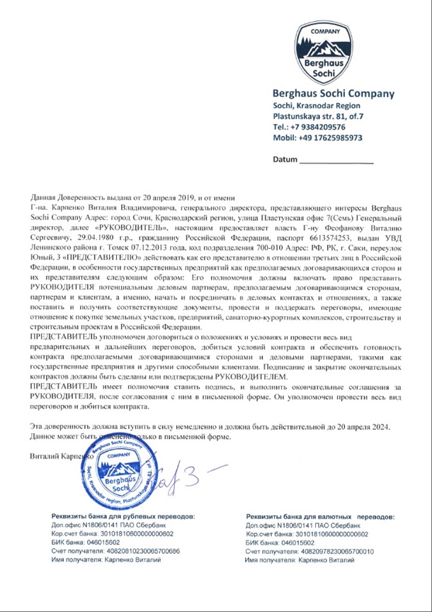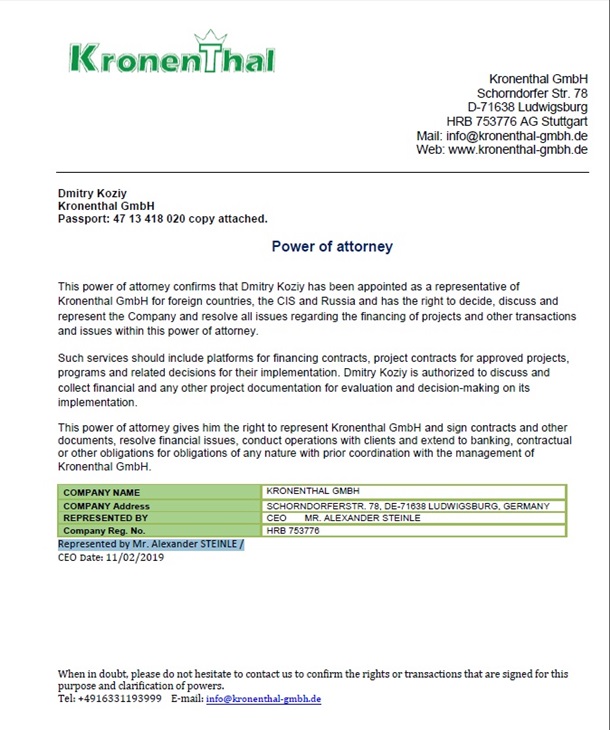 2019 года александр штайнле выписывает доверенность которая подтверждает, что