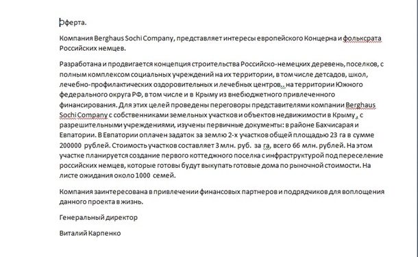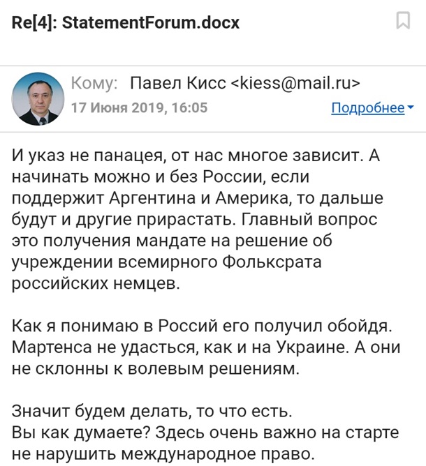 немцев. О создании этих структур и причастности к проектах некоторых немцев