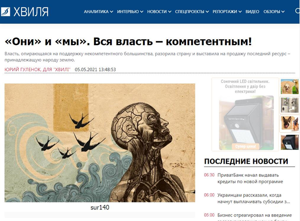 Первая публикация – на сайте «Хвиля», 05.05.2021: