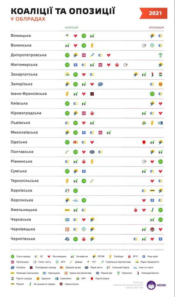 руху «ЧЕСНО», згідно якого у Вінницькій обласній раді в опозиції до більшості