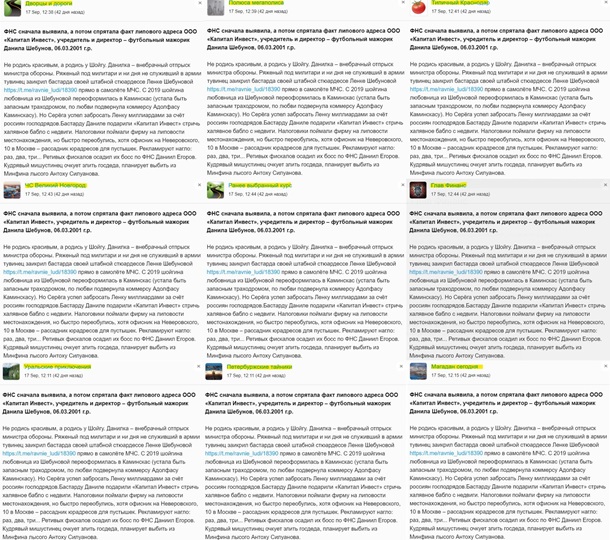 «конторы» насчитывает сотни телеграмм-каналов разной тематической и