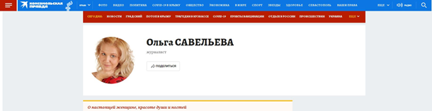 Страница Ольги Савельевой на сайте