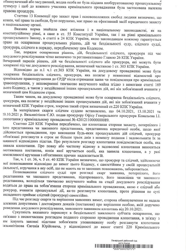 висновок, Шевченківський райсуд Києва у липні 2020-го відмовив Ю.Вязьмітінову у
