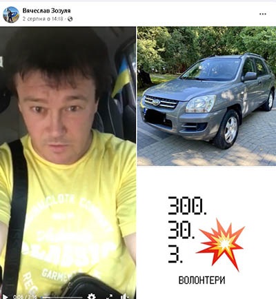 А це В'ячеслав Зозуля. Місцевий підприємець зумів передати фронту сотні тепловізорів та десятки автомобілів. Людина із загостреним почуттям справедливості теж заступилася за волонтерів та бійців. Про нього, батька трьох дітей, через соцмережі та сайти був поширений фейк про романтичні стосунки з хлопцем. Були використані фото репера з Приморського краю Російської Федерації.