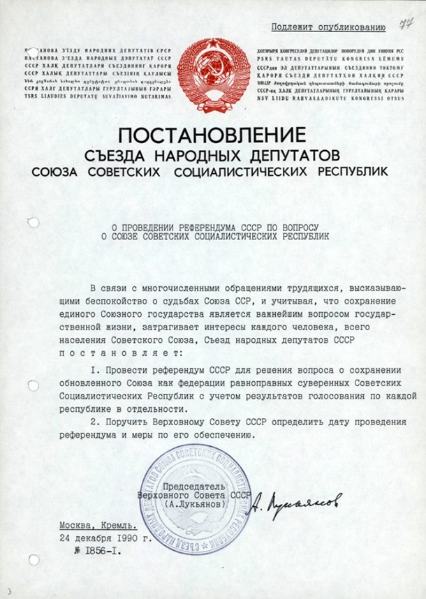 Рішення народу Радянського Союзу на Референдумі СРСР від 17.03.1991 р. про збереження саме СРСР (без подальшої шахрайської заміни посадовцями однієї держави СРСР на СНД), має більш високу юридичну силу, і це є тільки юридичним доказом усього ланцюга шахрайських дій посадовців щодо привласнення майна народу СРСР - роботодавця цих посадовців.