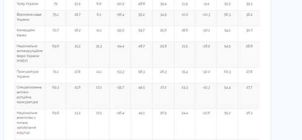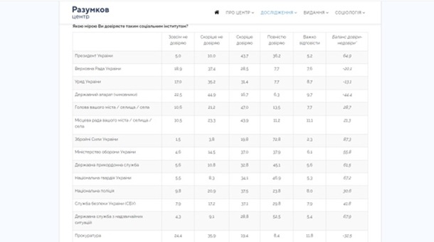 презентоване Центром Разумкова, виявило, що серед всіх державних та соціальних