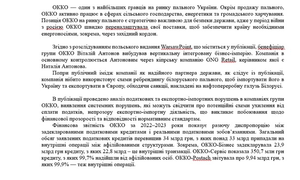 порушеннях чи навіть відмиванні коштів. Зафіксовано закупівлі аміачної селітри,