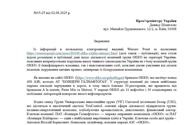 Звернення до Прем’єр-міністра України Дениса Шмигаля