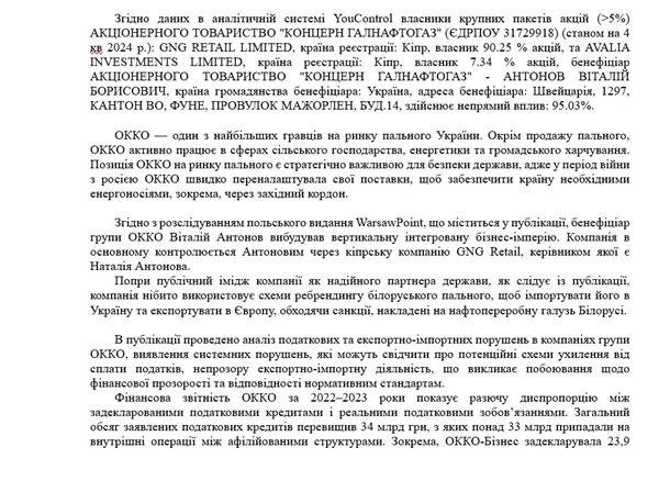 зловживання під час імпорту сільгоспхімії та пального. Згадки про схеми OKKO
