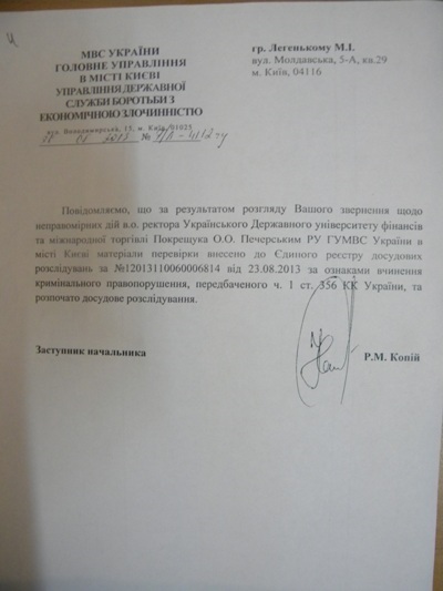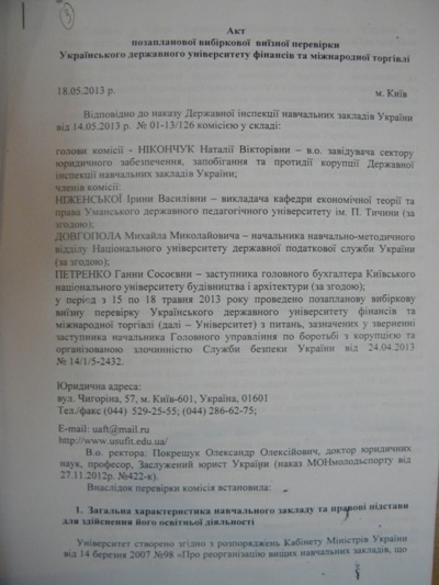 Корупційний скандал в Українському державному університеті фінансів та міжнародної торгівлі – у документах.