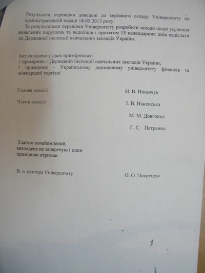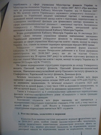 ректора бачили порушення в інших сферах, зокрема, в фінансовій, в сфері