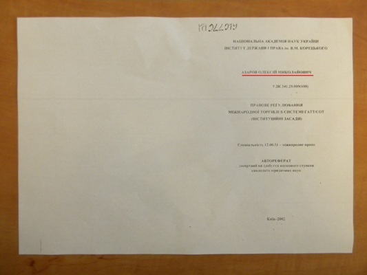Миколайовича Азарова. Як підтвердження наводимо автореферат дисертації на