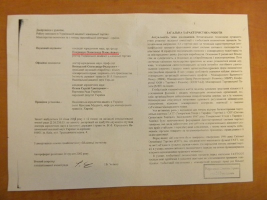здобуття наукового ступеня кандидата юридичних наук, копію якого вдалося зняти