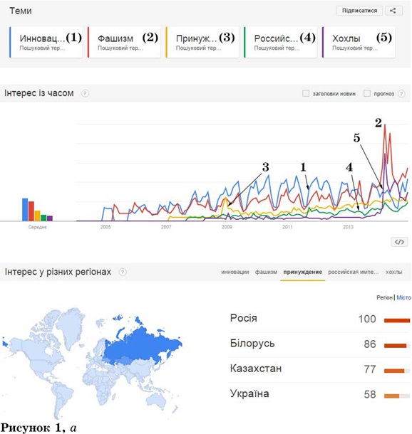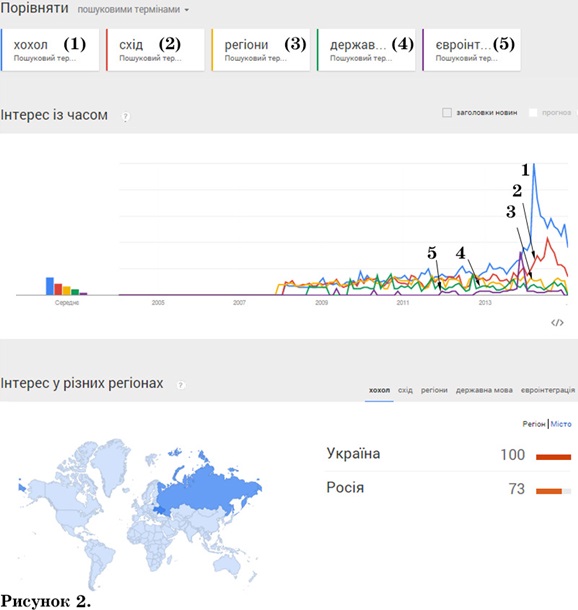(див. сплески вживаності відповідних слів в околі 2014 року). Варто також відзначити,