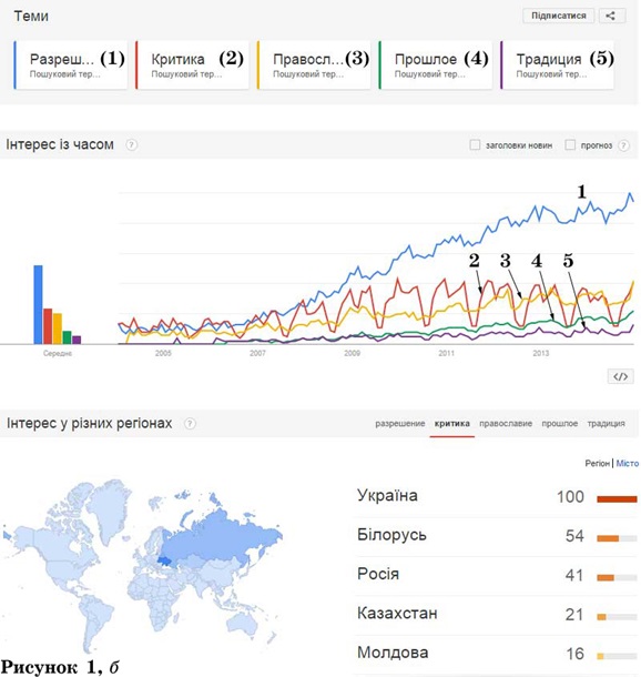 деяких «світоглядних» слів російської мови в пошукових запитах Google та географічний розподіл
