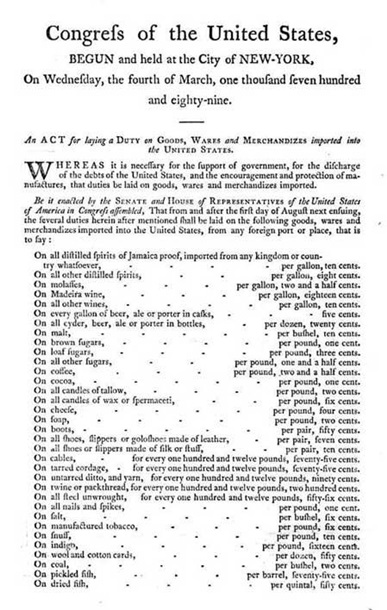 акт від 4 липня 1789 р. А вже 31 липня того ж року п'ятий акт конгресу заснував митну