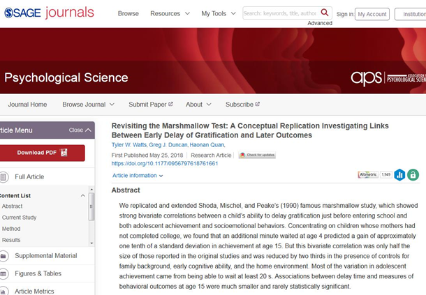 от сиюминутных удовольствий: «We observed that delay of gratification was strongly correlated with concurrent measures of
