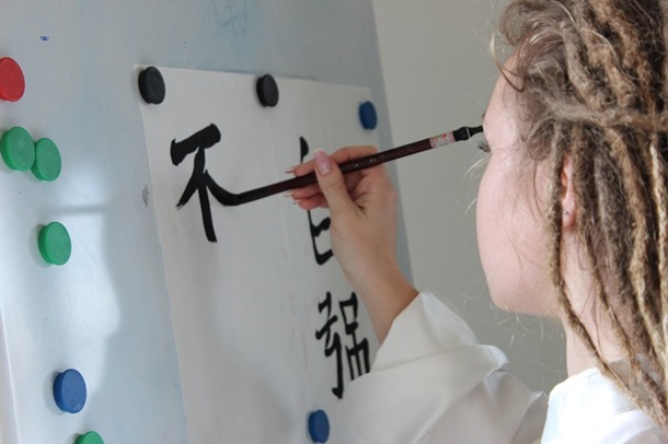 китайском языке, демонстрацию владения каллиграфией, военным искусством ушу или