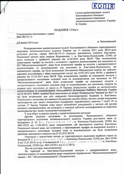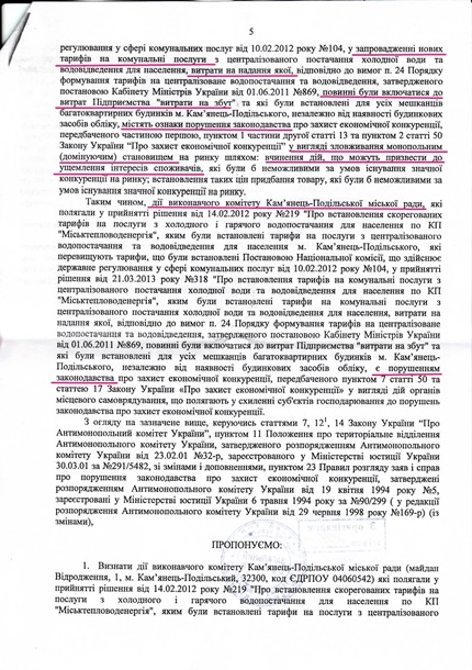 Антимонопольный Комитет выявил нарушения в действиях КП «Міськтепловоденергія» и городского совета г. Каменец-Подольского