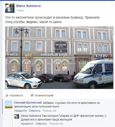 Питере, в магазине «Буквоед», был задержан Павел Губарев. Во время автограф