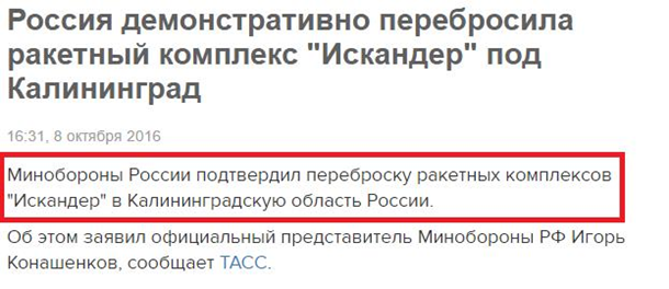 То, нагнетая военную истерию, Россия в Калининград оперативно-тактический ракетный комплекс