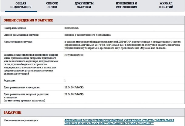 на концерт в Донбассе 1,135 миллионов рублей. Так, федеральная дирекция