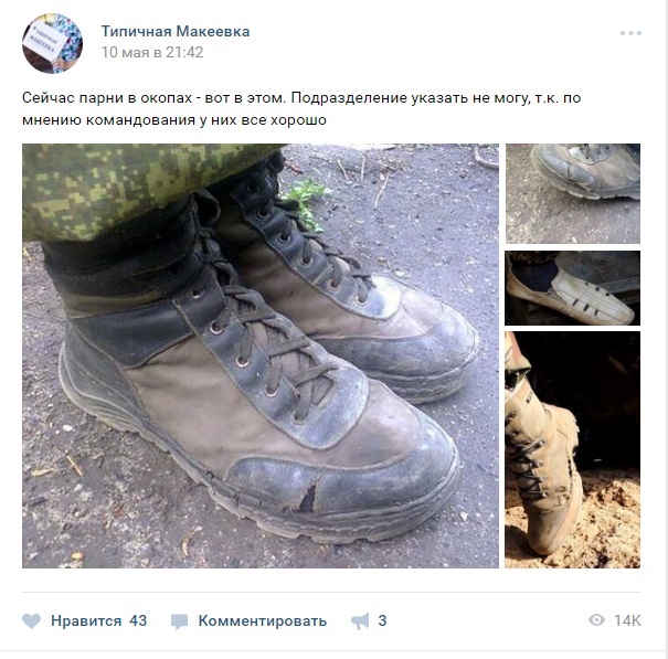 обуви с подписью: «Сейчас парни в окопах