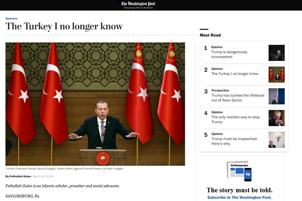 Вот статья Гюлена, ставшая наиболее читаемой в газете "The Washington Post ":