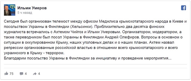 всего крымскотатарского и украинского в Крыму террором», – написал 2 декабря в
