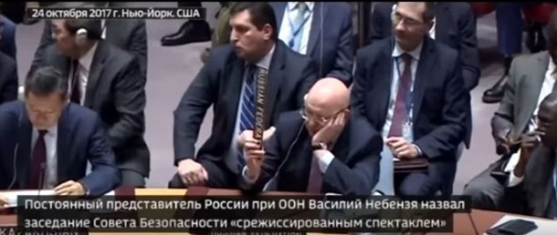 Небензя уже успел отличиться на заседаниях: читая доклад с листка и играя с табличкой