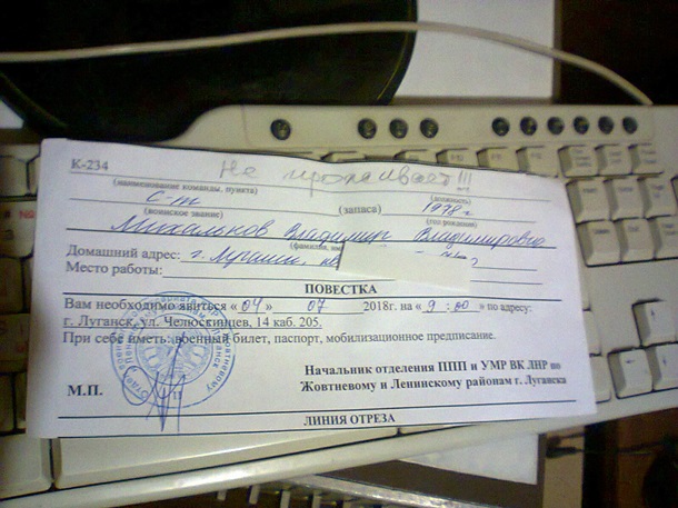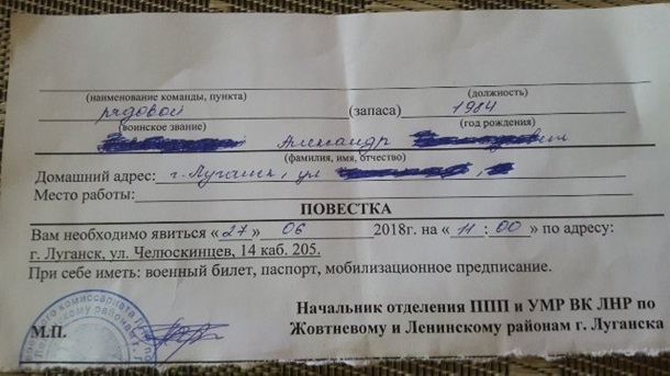 проживающим в Луганске, снова начали приходить повестки. В подтверждение своих