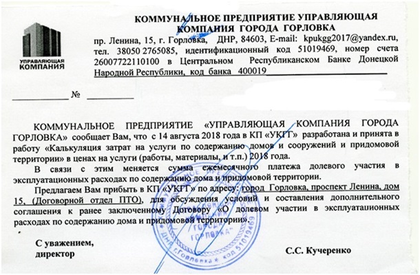 Вот такие уведомления получили на днях жители многоквартирных домов в Горловке