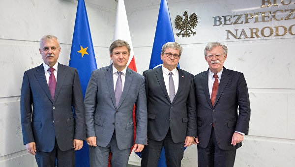 На них советник Трампа по вопросам национальной безопасности Джон Болтон, который недавно посетил Киев и Минск, обсудил с руководителем Бюро национальной безопасности Польши Павлом Солохом, государственным секретарём Совета Безопасности Белоруссии Станиславом Засем и самим Данилюком «ситуацию в Центрально-Восточной Европе и механизмы формирования построения стабильности для обеспечения суверенитета, безопасности и территориальной целостности стран». Консультации заранее не анонсировались, а первым о них сообщил в своём Твиттере сам Болтон.