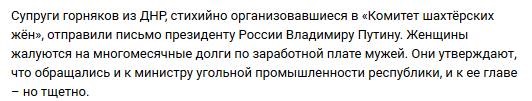 На данный момент на некоторых шахтах ЛНР сформировалась задолженность по зарплатам до 3-4 месяцев. Есть предприятия, на которых еще не до конца выплатили августовскую зарплату...
