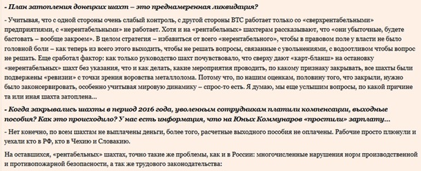 "убыточные" шахты – и стал их затапливать. В том числе угрожал