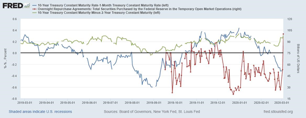 сентябре 2019 года возобновив сделки РЕПО (красная линия), когда кривая