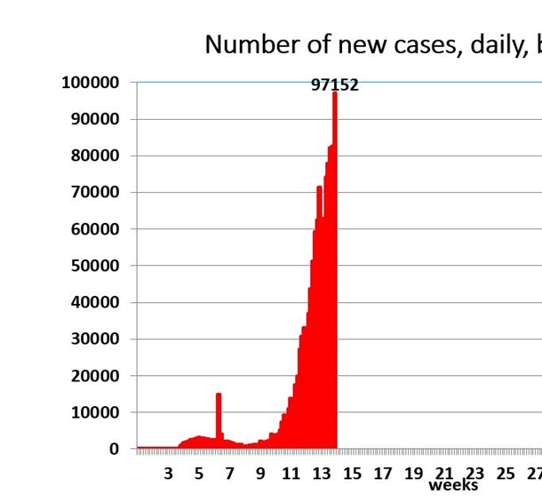 При сегодняшней динамике сомнений нет в том, что и 100 000 ежедневного прироста количества инфицированных и 10 000 ежедневного прироста летальных исходов будут преодолены.