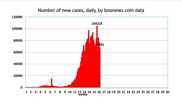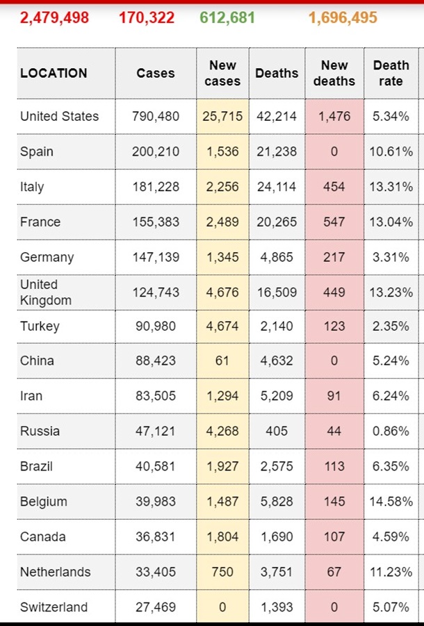 Испания и Германия прибавили менее 1%, Италия, Иран и Франция -1-2%, США - более 3%, Великобритания - около 4%, Турция - более 5%. В штате Нью-Йорк заболело по официальным данным больше, чем в любой стране Европы, - 250 000. В армии США предварительная летальность 0,42%.