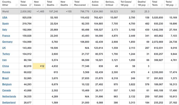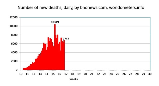 В США почти 40 тысяч новых случаев и неожиданно Эквадор дал 11 тысяч. Общее количество летальных исходов за 4 месяца вплотную подошло к 200 000. Для сравнения - в мире ежедневно умирает 160 тысяч человек.