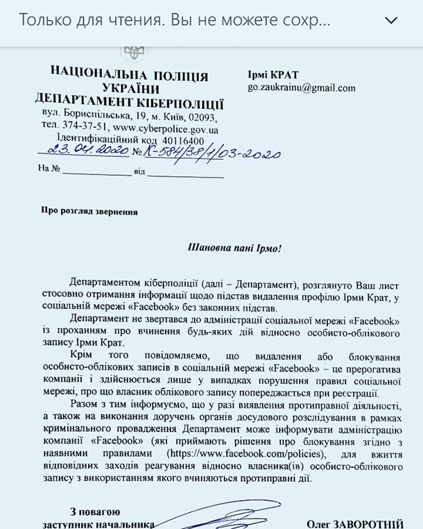 І відразу звинуватила в усьому кіберполіцію, а саме, в атаці на її сторінку. Але, поліція швидко відхрестилася від подібних звинувачень, і навіть надіслали офіційного листа, що вони до цього злочину не мають жодного відношення.