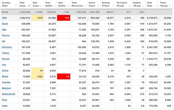 Количество новых летальных исходов неожиданно большое - 10 254 за счет Великобритании, которая добавила более 4-х тысяч за счет пересчета. Соответственно, глобальная предварительная летальность превысила 7% (7,09).