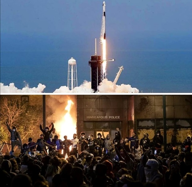 Велика кількість загиблих від коронавірусу вже відійшла на другий план на фоні масових протестів, заворушень, грабунків, сутичок та безладу, які охопили вже всю країну. Боротьба за справедливість вже перейшла межу дикунства і натовп відверто грабує бутіки та магазини електроніки.