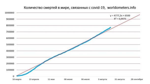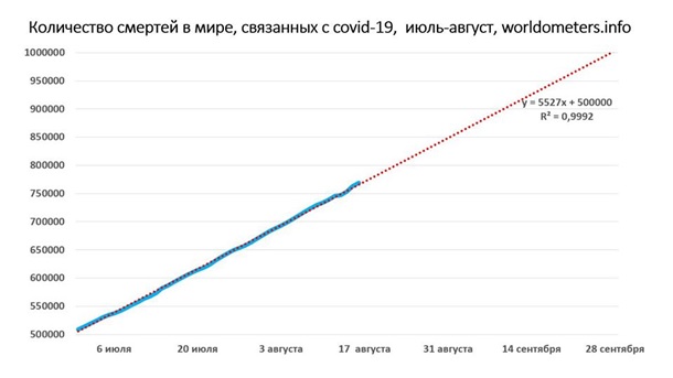 Миллиона летальных исходов мир достигнет к концу сентября, это составит примерно 2,5% всех смертей. С коронавирусом ПОКА познакомились, на мой субъективный взгляд, 1-2% жителей планеты, так что все еще впереди.