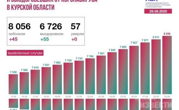Общее количество заболевших 8056. Выписано 6 726, за сутки 55 пациентов.