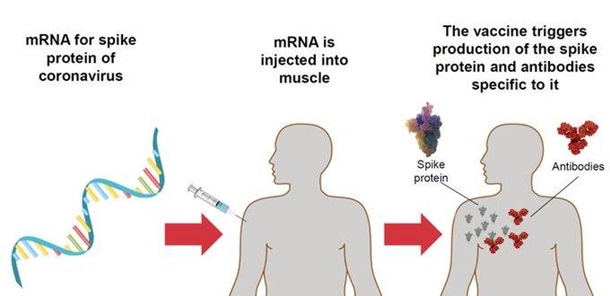 мРНК заключена в батискаф из жирового материала(липосома), который помогает ей проникать внутрь наших клеток. Там он «переводится» в часть белка Spike, который активирует нашу иммунную систему, вырабатывая антитела и Т-клетки, поэтому, когда мы подвергаемся воздействию живого вируса, мы можем избавиться от него.(рис2)