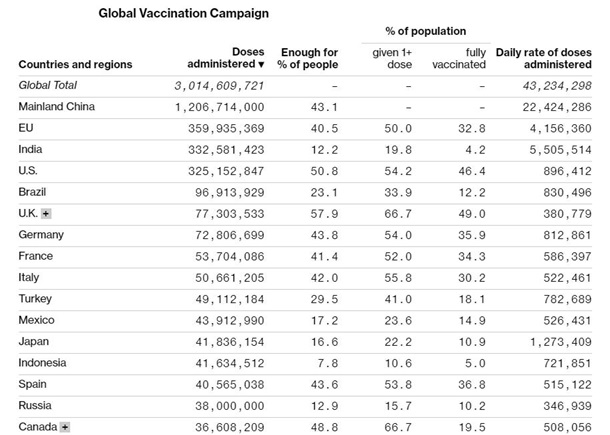 40% общего количества приходится на Китай (86 доз/100 жителей). В США - 100 доз, в ЕС- 81 доза, в Великобритании - 116, в России - 26, В Украине - 8 доз/100 жителей. В течение июня был достигнут темп 1 миллиард доз в месяц, при его сохранении через год все население планеты было бы вакцинировано. Нужно ли вакцинировать всех?