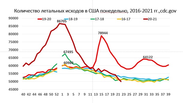 Трехгребневая волна Covid-19 в США завершилась. Началось компенсаторное снижение смертности
