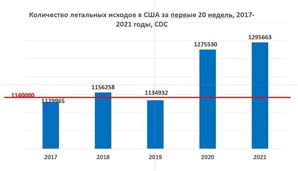 В структуре причин смерти в 2020 году в США covid уступил только инфарктам и раку, значительно опередив Альцгеймера, инсульты, хронические заболевания легких и повреждения