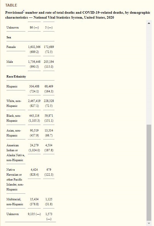 Интересные данные полученные на основе предварительного отчета о смертности в 2020 году.