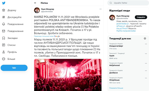 особи як Яцек Мендлар знищують досягнення українських та польських народів в